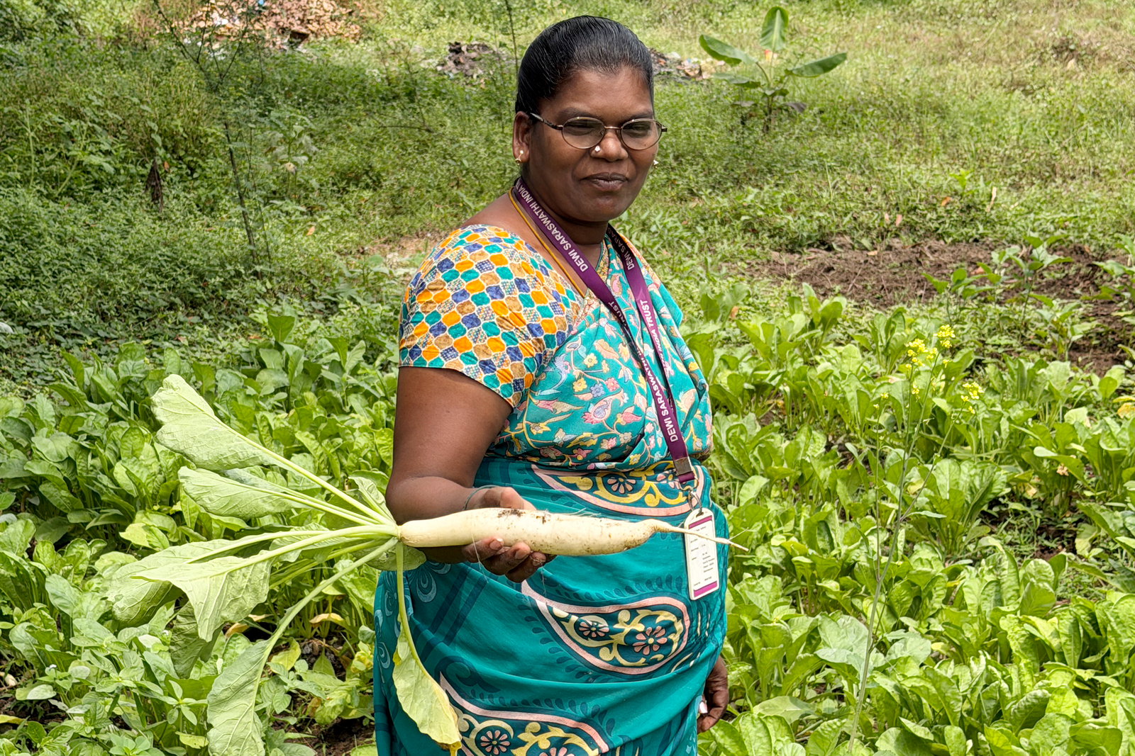 Our kitchen garden yields organic greens and vegetables such as drumstick, ladies finger and fruits like banana, from which the children are benefited.